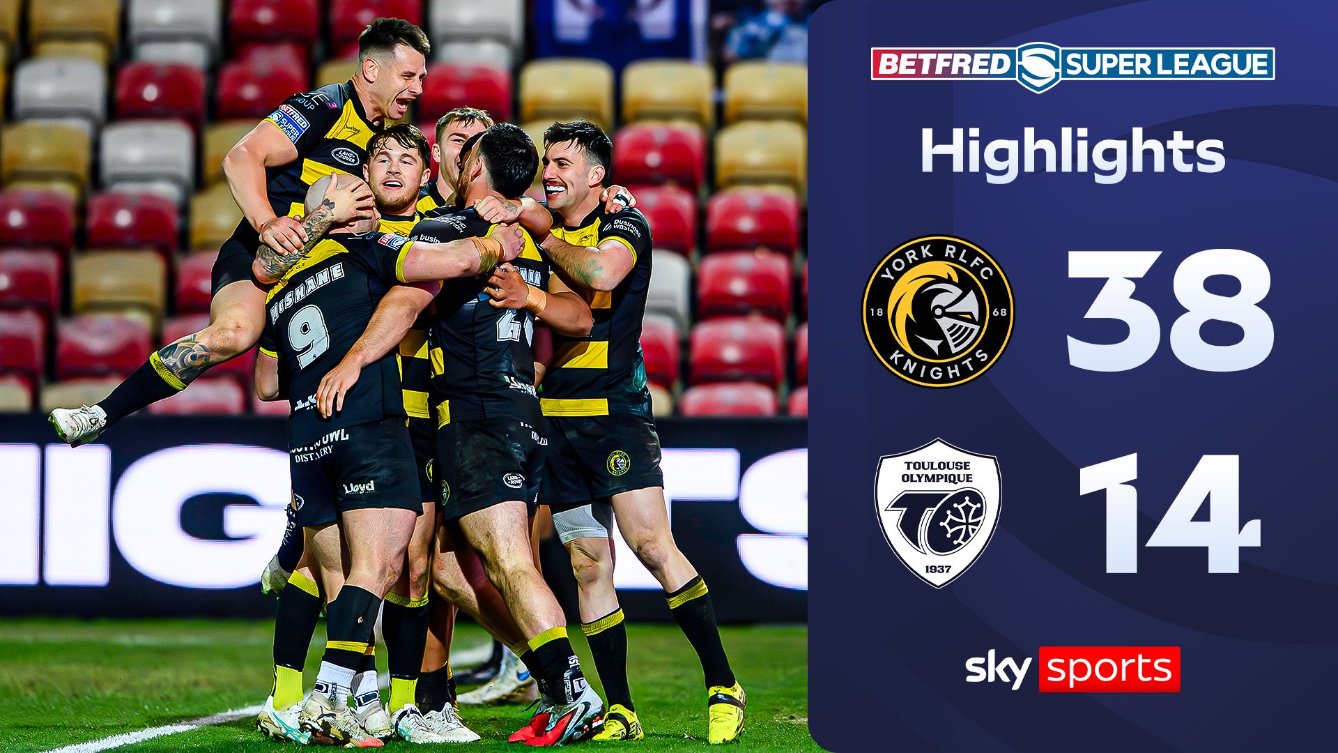 Highlights from the Betfred Super League clash between York Knights and Toulouse.