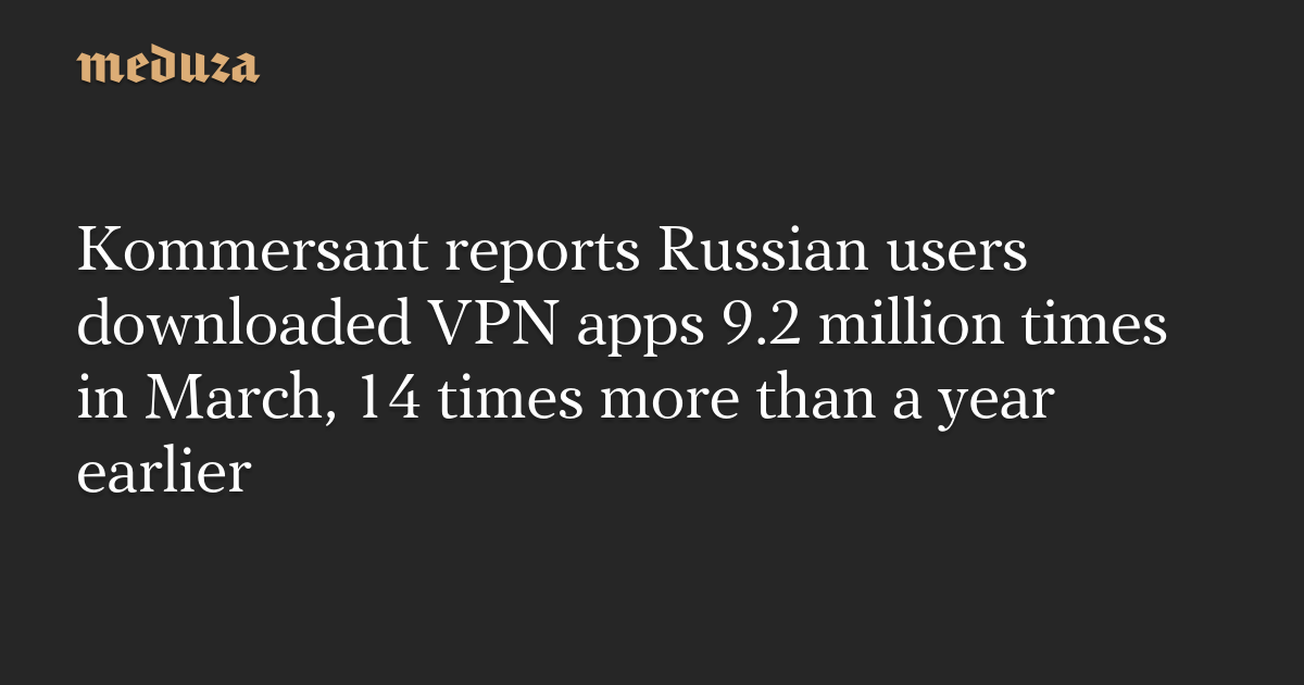 Kommersant reports Russian users downloaded VPN apps 9.2 million times in March, 14 times more than a year earlier