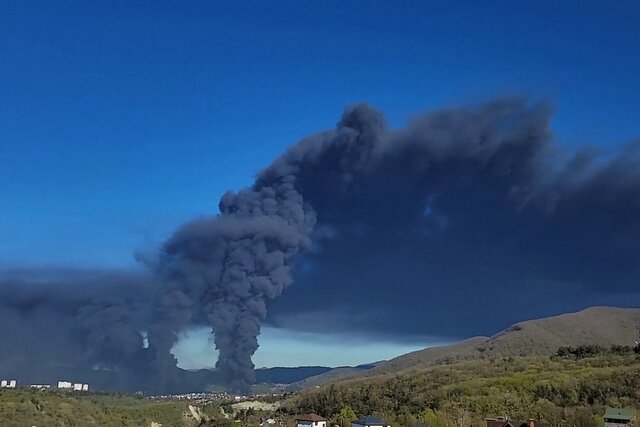 Ukrainian drones struck the oil-loading infrastructure at the port of Tuapse overnight, sparking a large fire after debris fell at the site. The Krasnodar Krai operational headquarters said no one was injured. Within a few hours, satellite images showed smoke had spread at least 140 kilometers (87 m